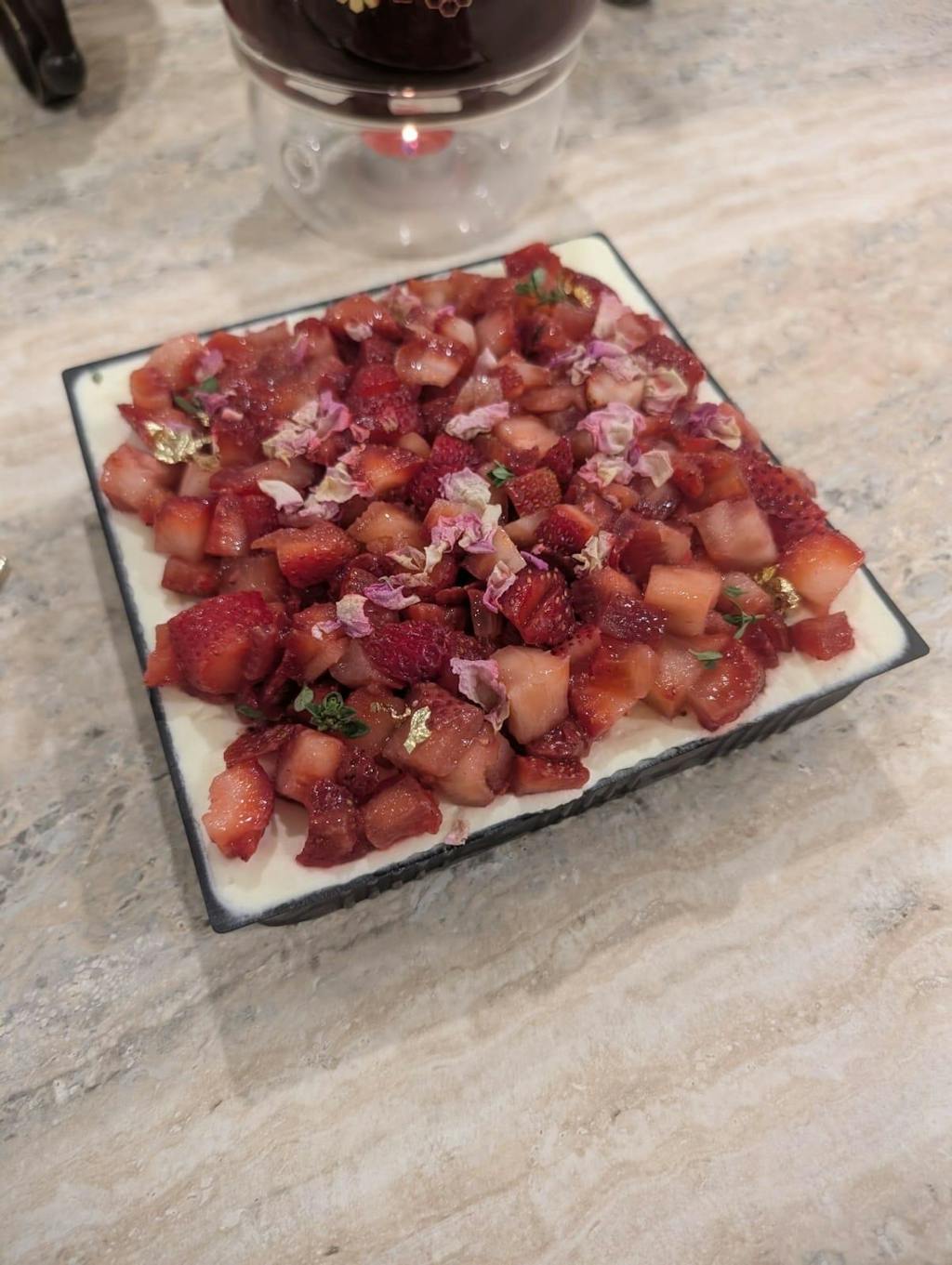 Glazed premium strawberries with strawberry compote and chantilly fresh cream on our signature chiffon sponge.