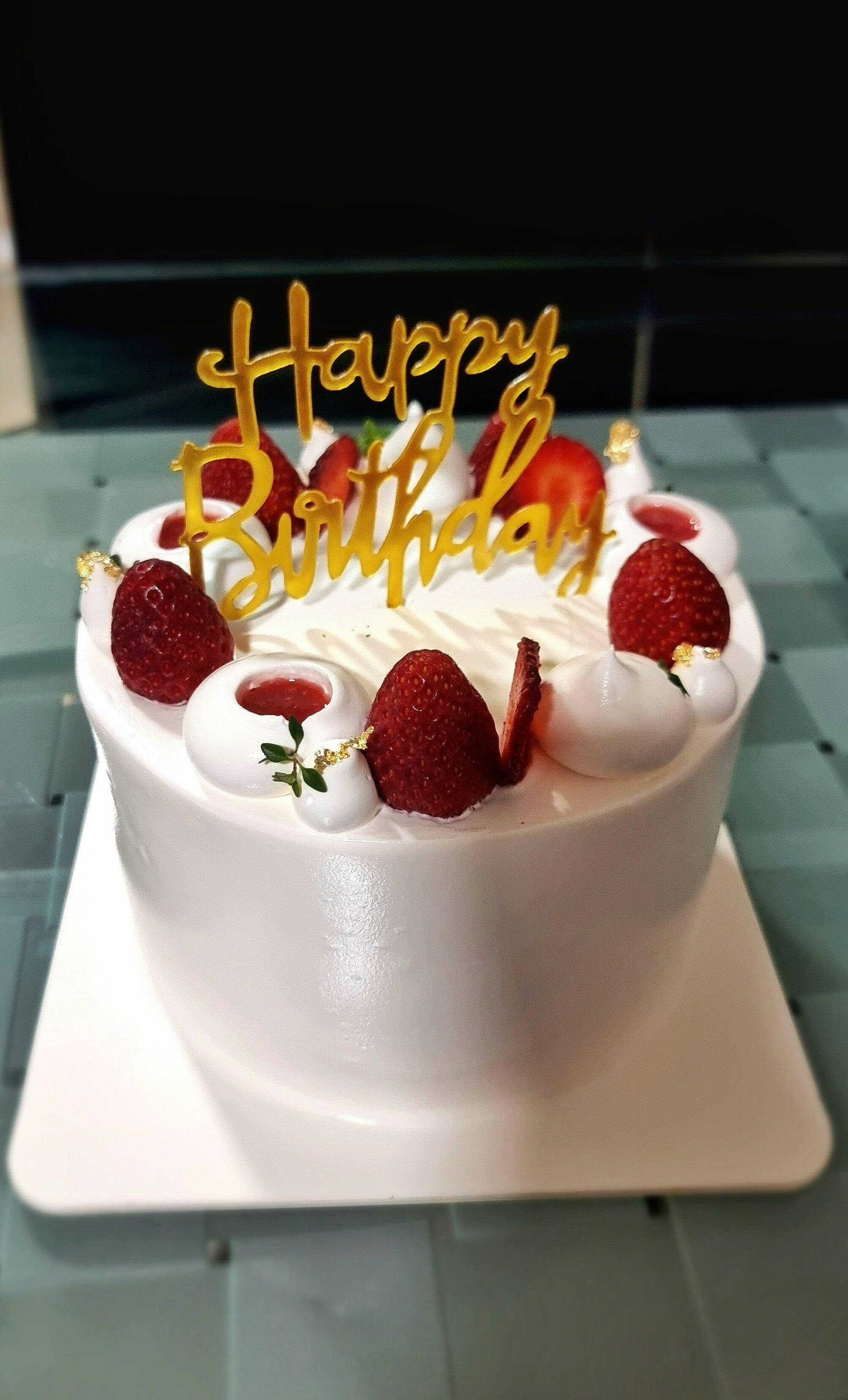 Whipped fresh cream cake filled with premium, farm fresh strawberries on a fluffy cotton chiffon sponge