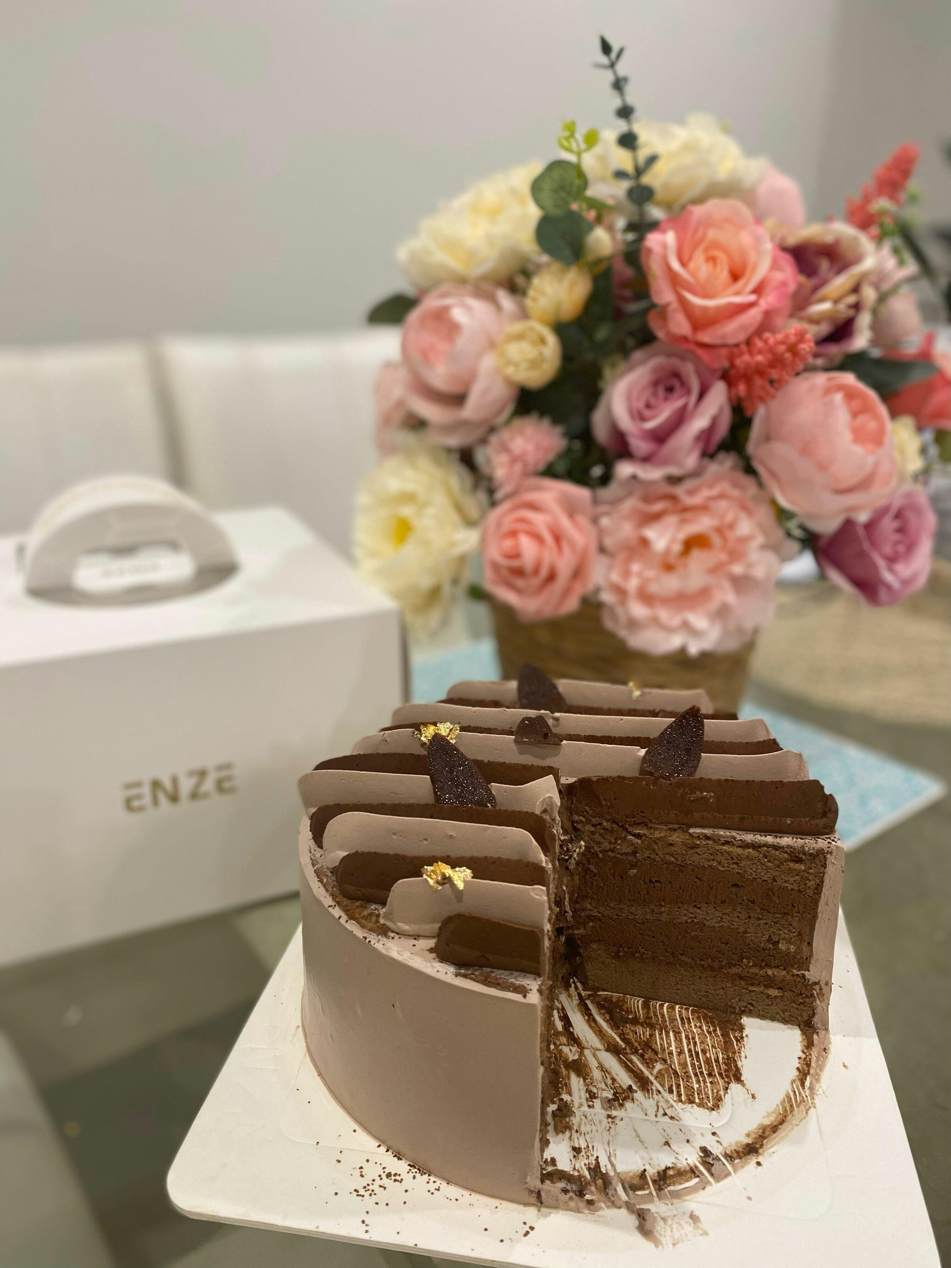 A light yet flavourful, dutch processed cocoa chocolate chiffon cake with sea salt choc mousse cream